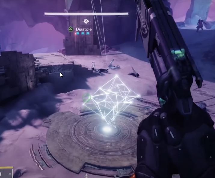 - Once full, shoot the Vex diamond below the hourglass to start the encounter