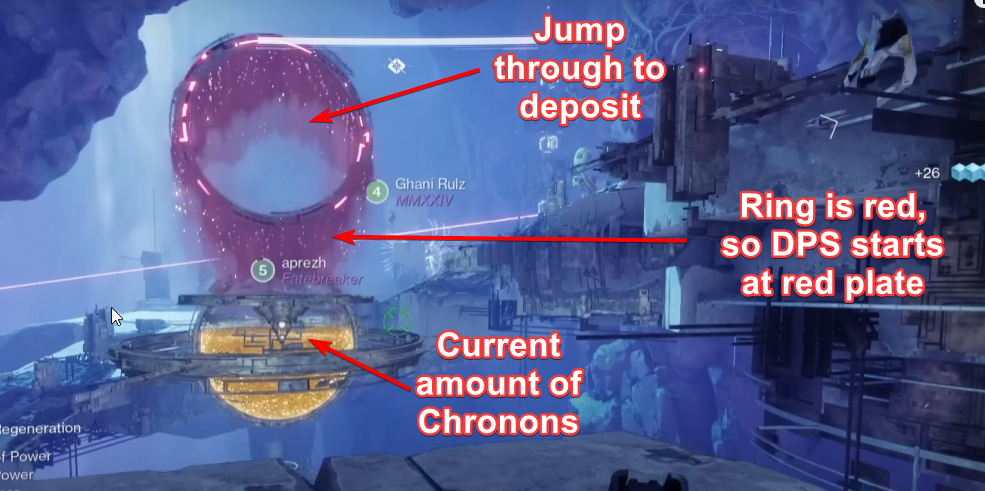 Chronons is deposited into the hourglass by jumping through a ring in the arena.